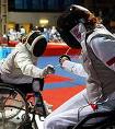 Modalidade para atletas em cadeiras de rodas.O programa tem 15 provas - equipes e individuais, masculinas e femininas, em florete e espada. Só os homens é que competem com sabre. As cadeiras de rodas são presas ao chão para dar estabilidade e permitir a liberdade de movimentos na parte superior do corpo do esgrimista. Os atletas estão ligados a uma caixa eletrônica que conta os toques da arma.